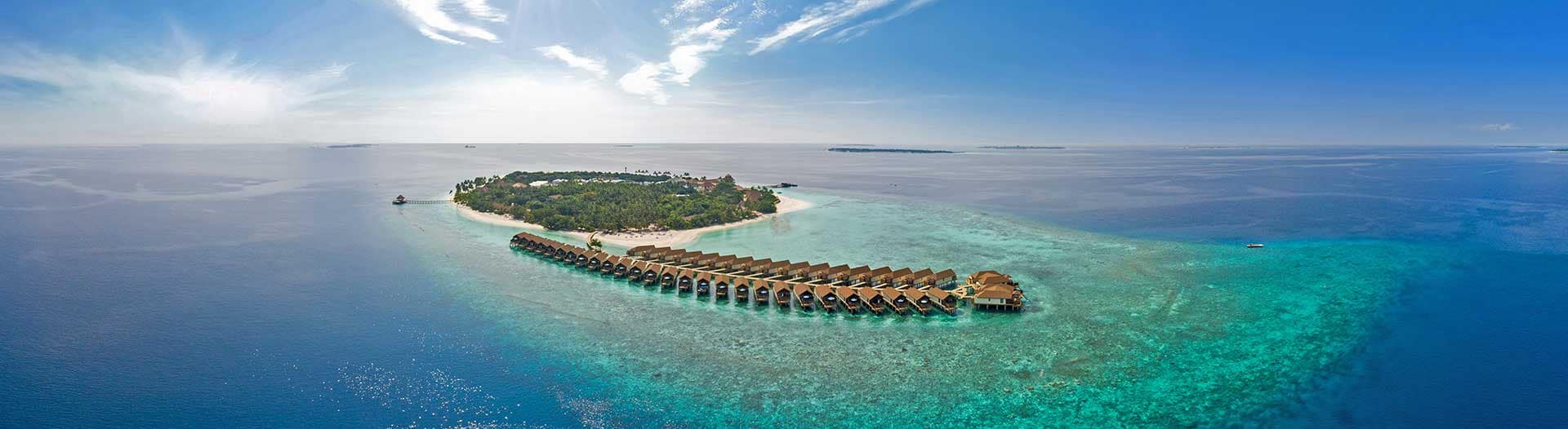 Reethi Faru, a 4 Star Plus Resort, opened in the autumn of 2017. The island measures 350 x 600 meters and its stunning house reef is just 30 to 80 meters from the shore. From the international airport, Reethi Faru can be reached by a scenic 45 minute seaplane flight or a 20 minute domestic flight to Dharavandhoo followed by a 30 minute speed boat ride to the Resort.
